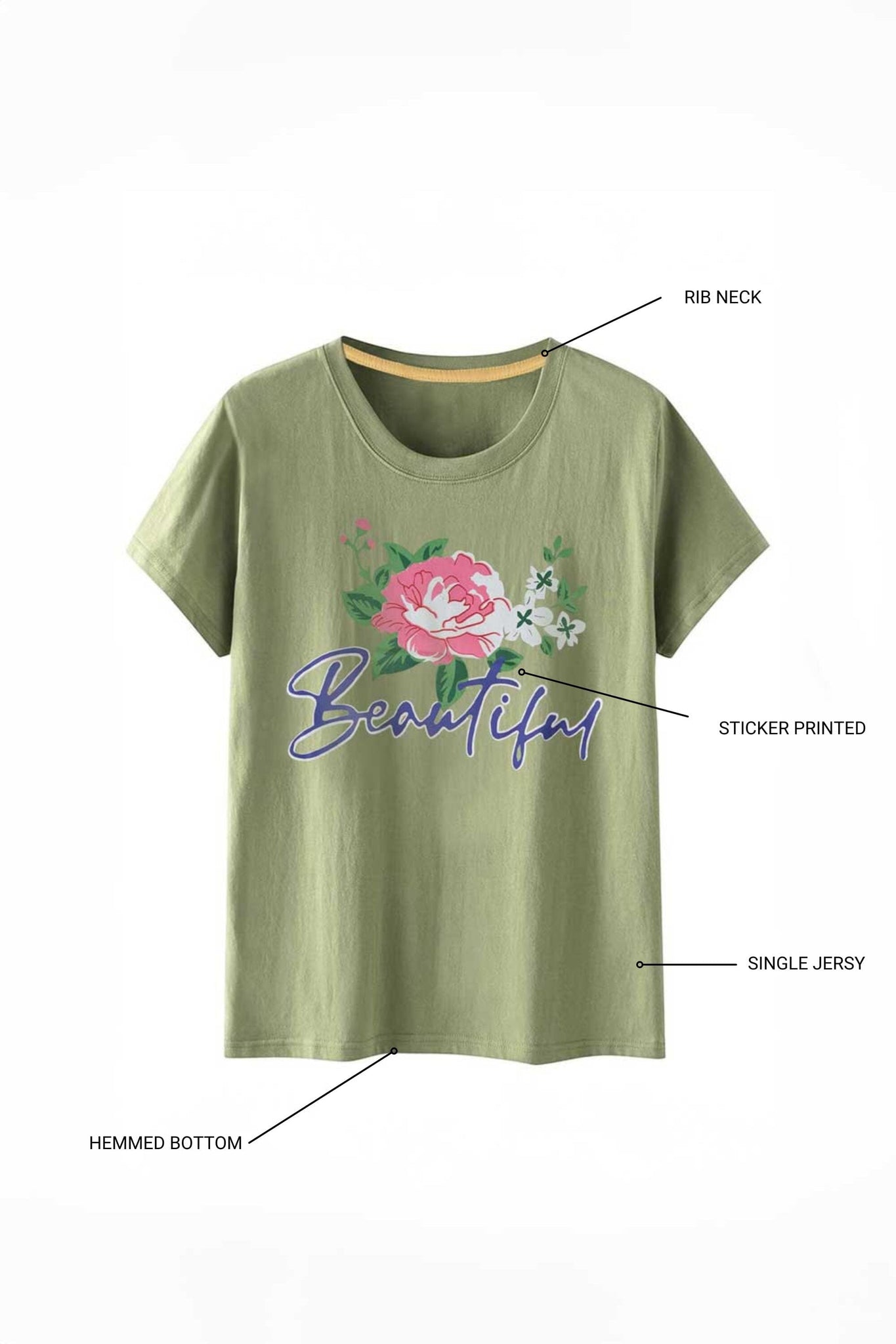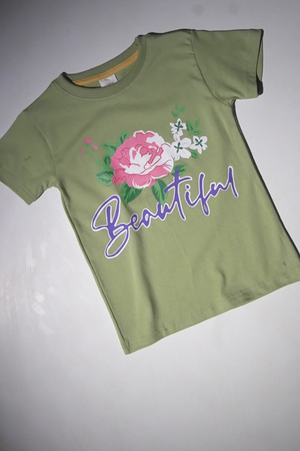 Let your child shine in this kid's printed t-shirt, featuring a charming floral graphic with the word "Beautiful" in an elegant script.