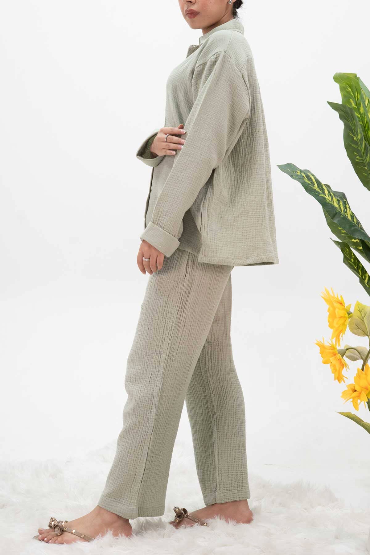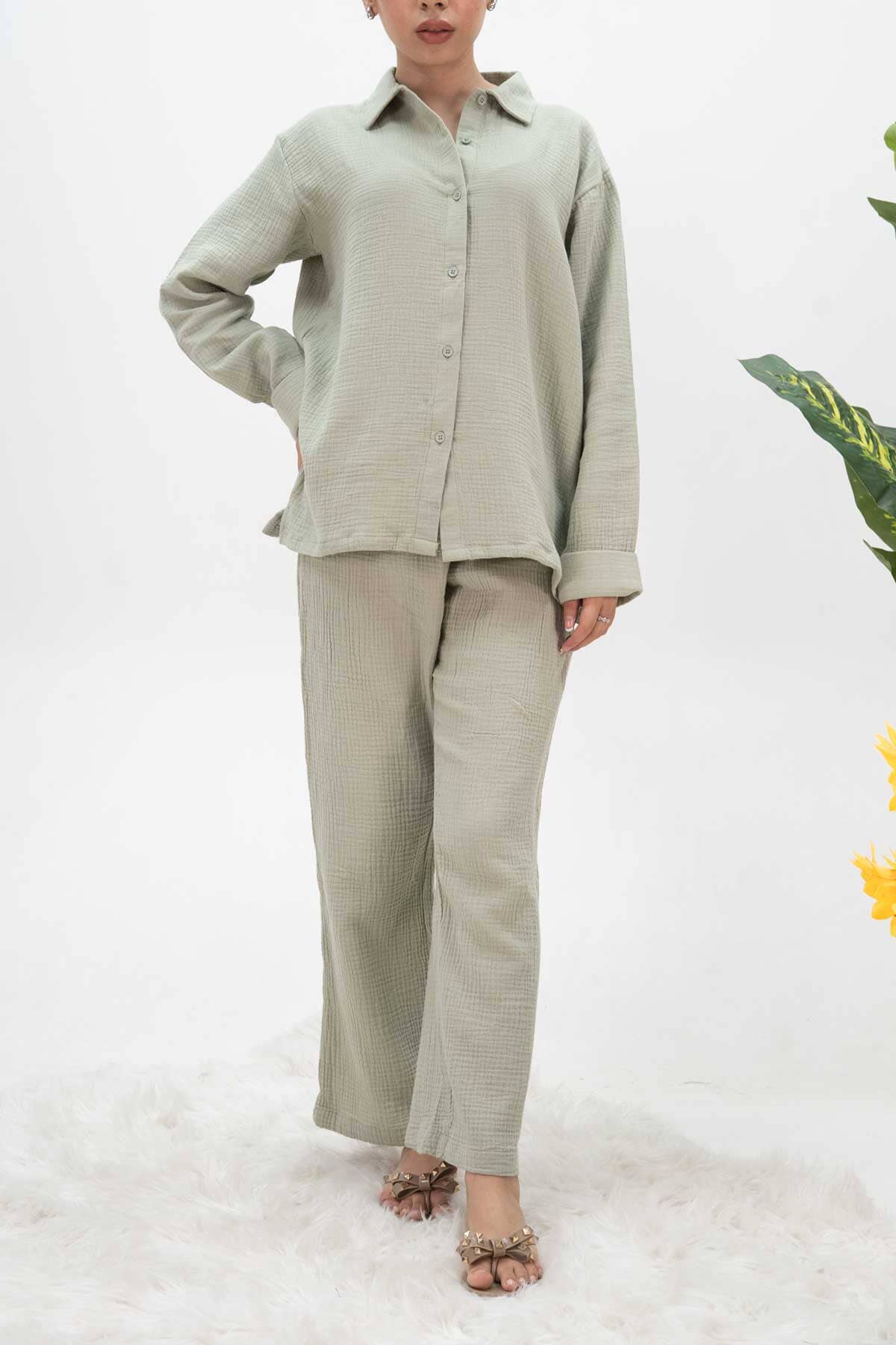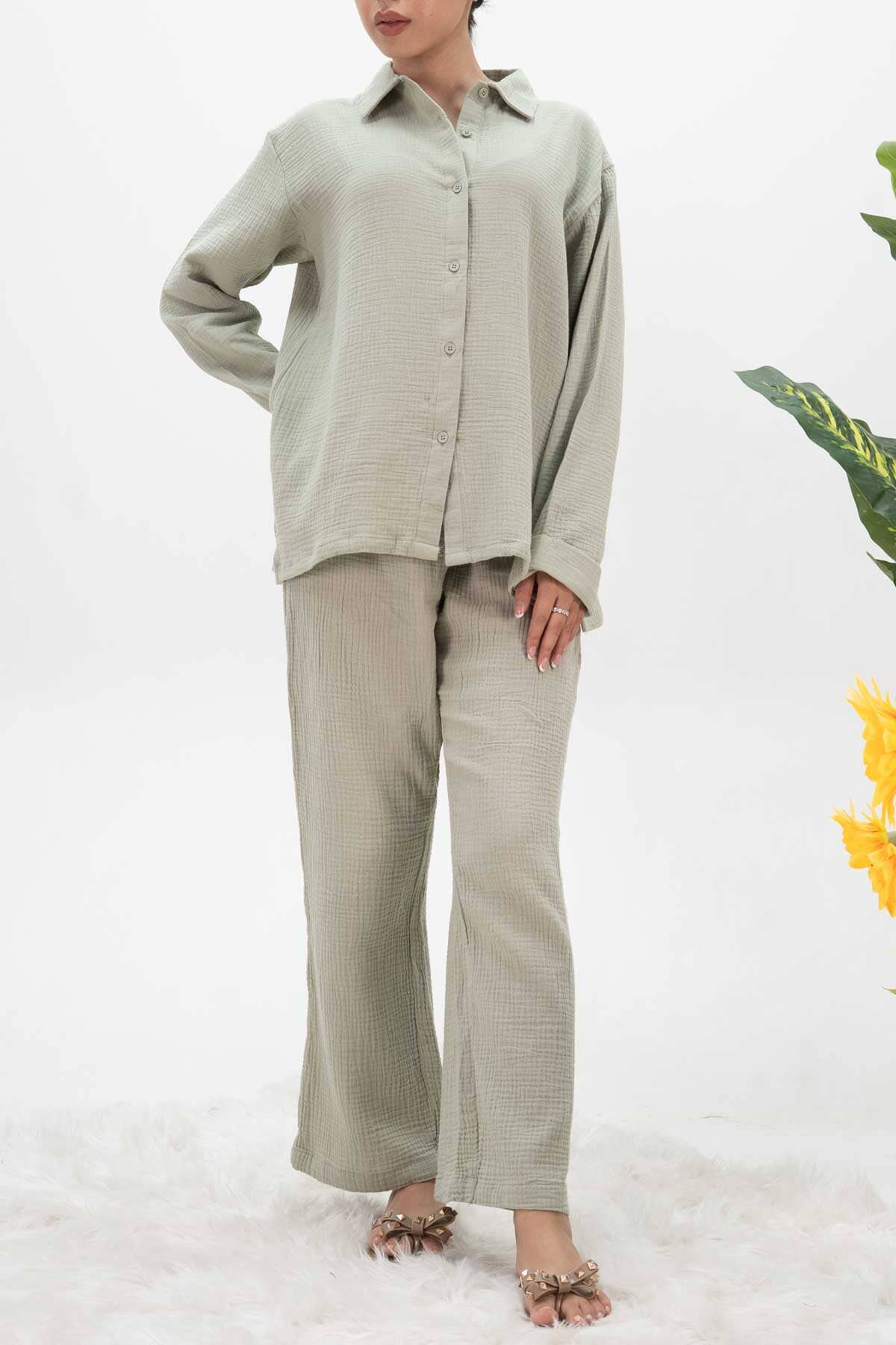 This East West crinkle Co-ord set blends comfort and style, featuring a timeless design with a loose fit, making it perfect for casual or semi-formal occasions.