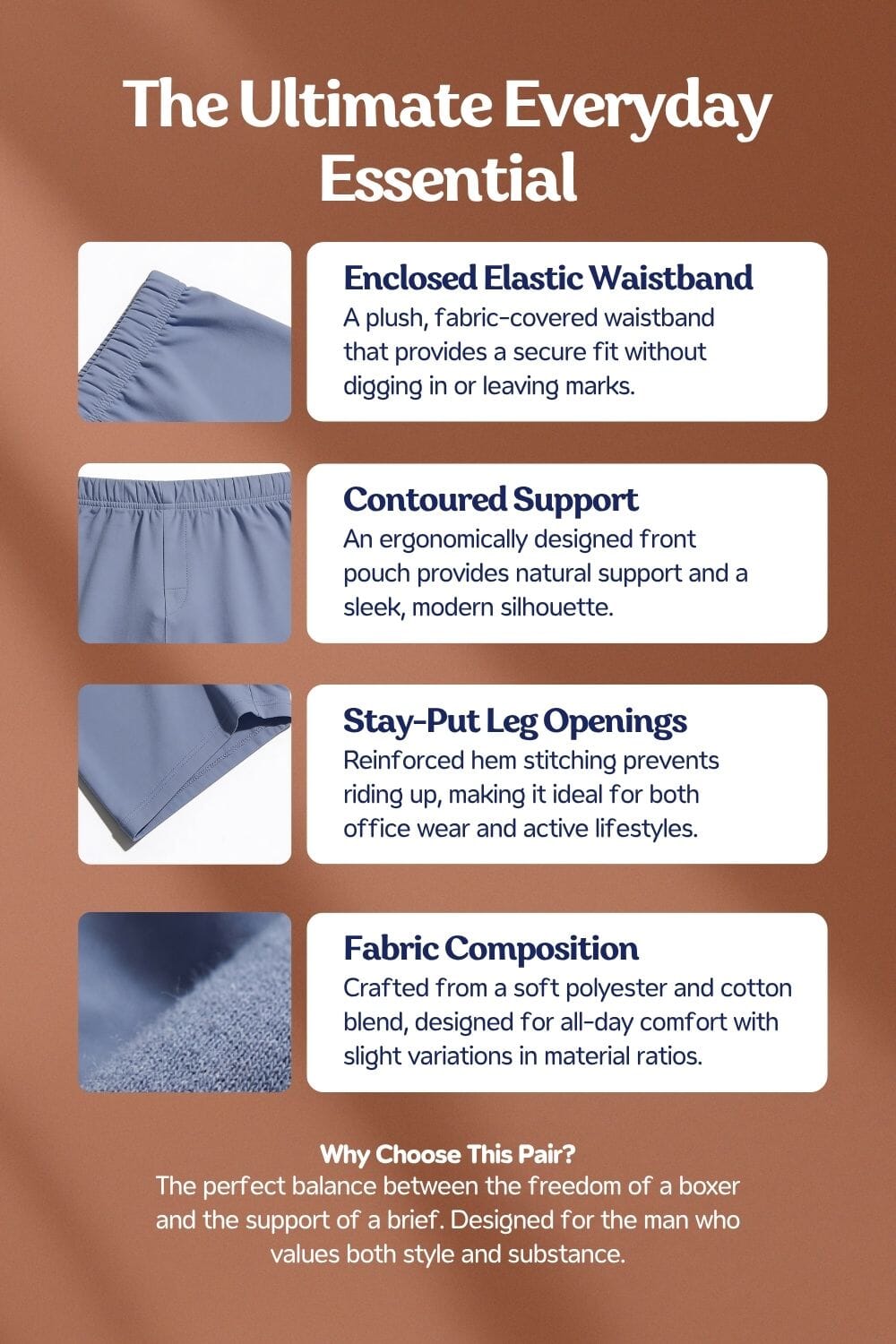 Note: Boxers are made from a composition of two fabrics polyester and cotton, however, composition material value may vary.