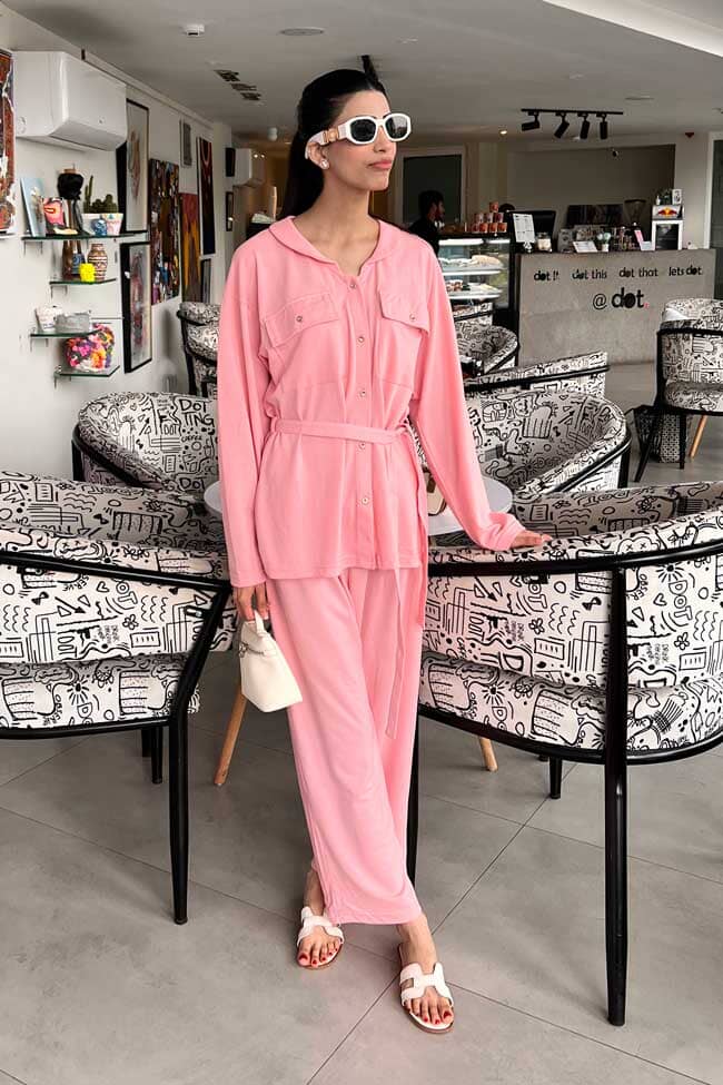 Relax in style with the East West Women's Pique Co-ord Set, Crafted from a premium blend of 65% polyester and 35% cotton, this set offers breathability, softness, and durability.