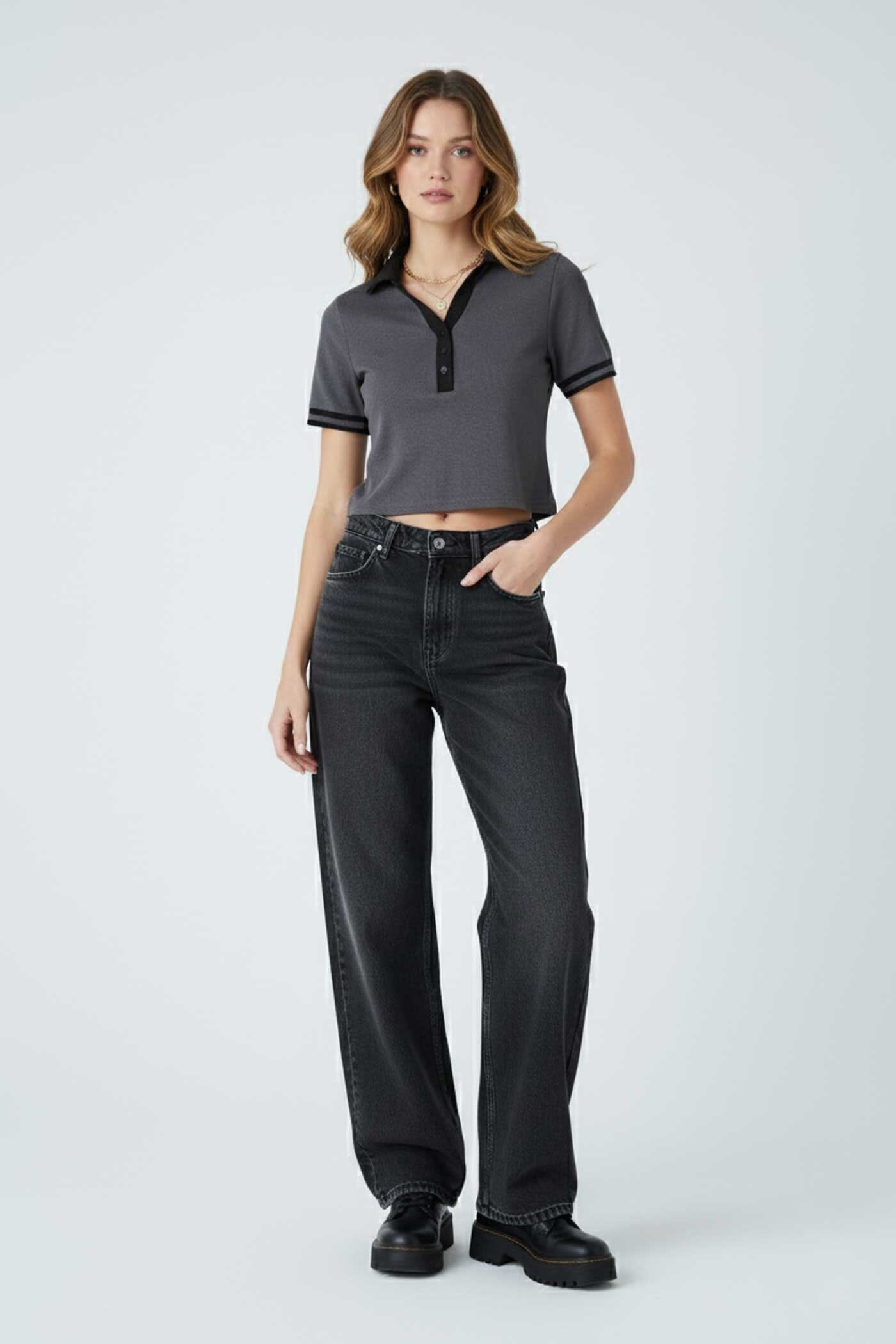 • Contrast collar & sleeves