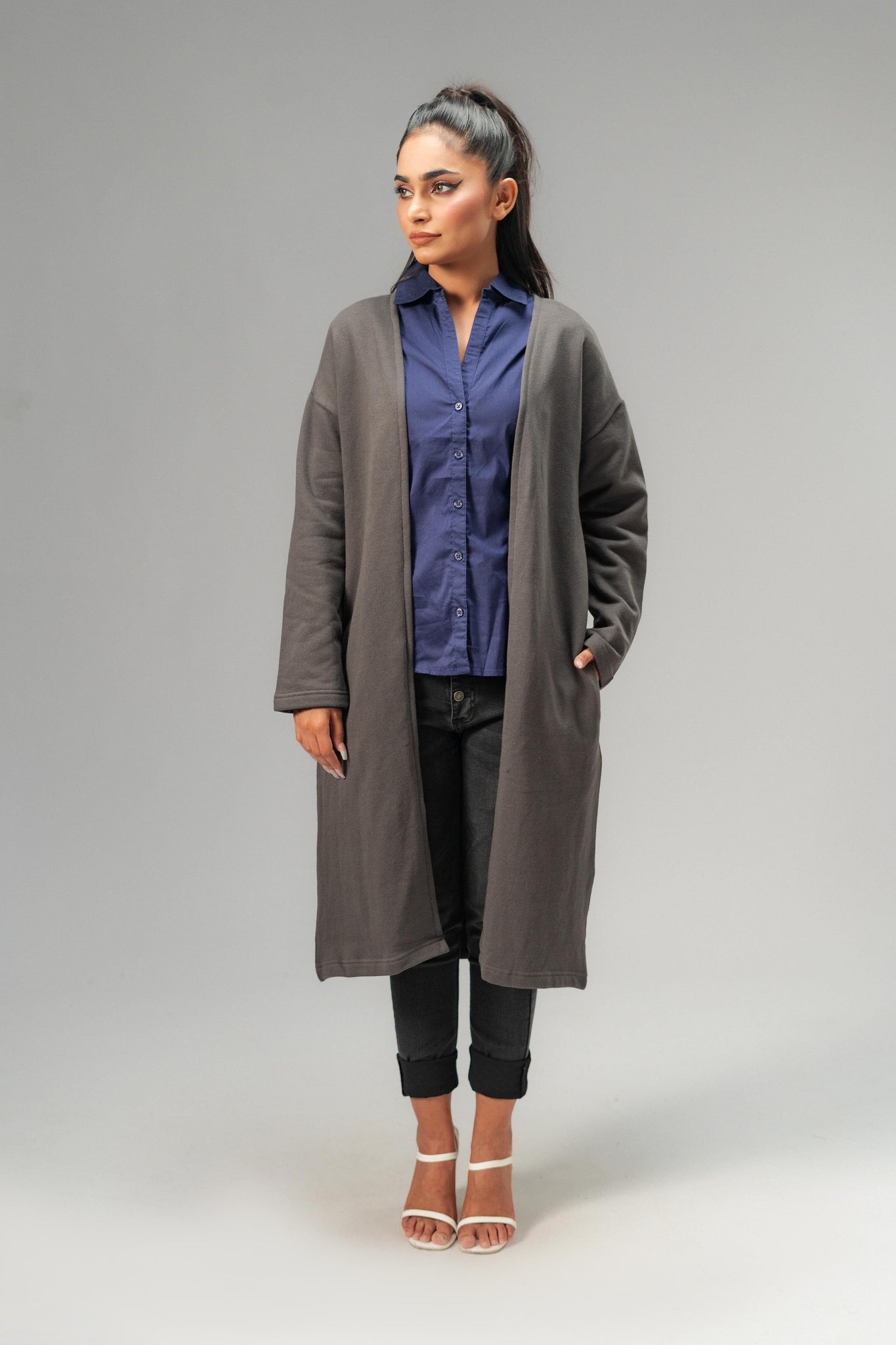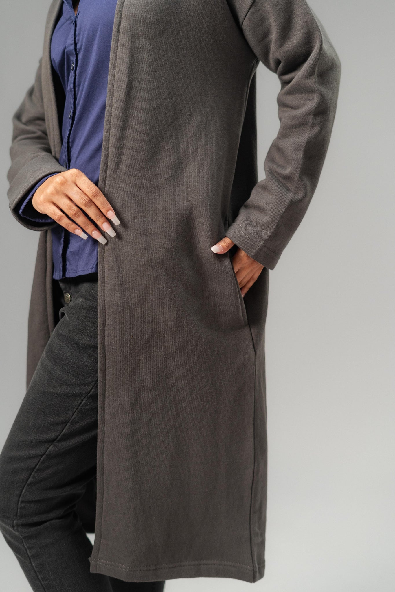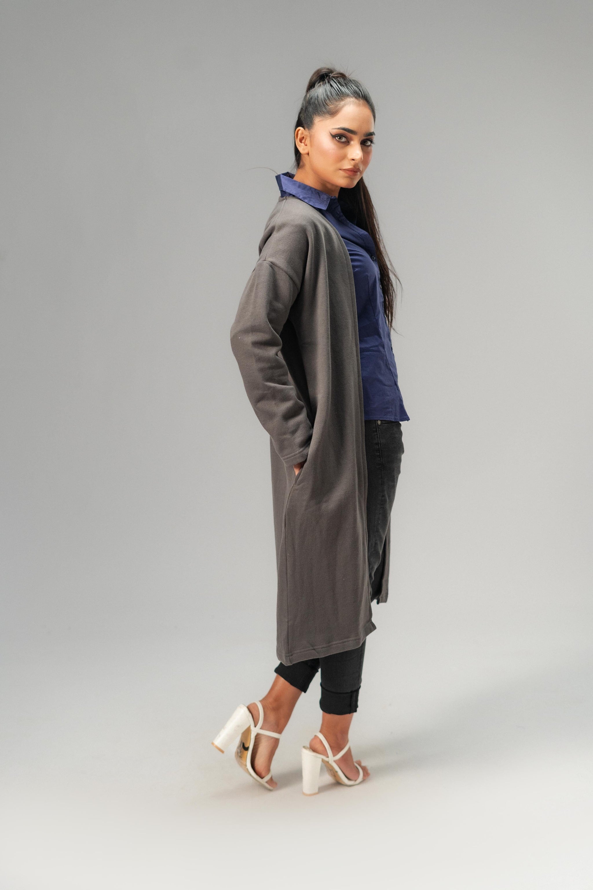 The Women's Long Coat is the perfect addition to your wardrobe this spring in Pakistan. Designed with comfort and style in mind, this coat is made from high-quality fleece material that keeps you warm and cozy on chilly days. The coat features a modern design, two hand pockets, streamlined look that flatters your silhouette. The neutral color options make it easy to pair with any outfit, making it a versatile choice for both casual and formal occasions.