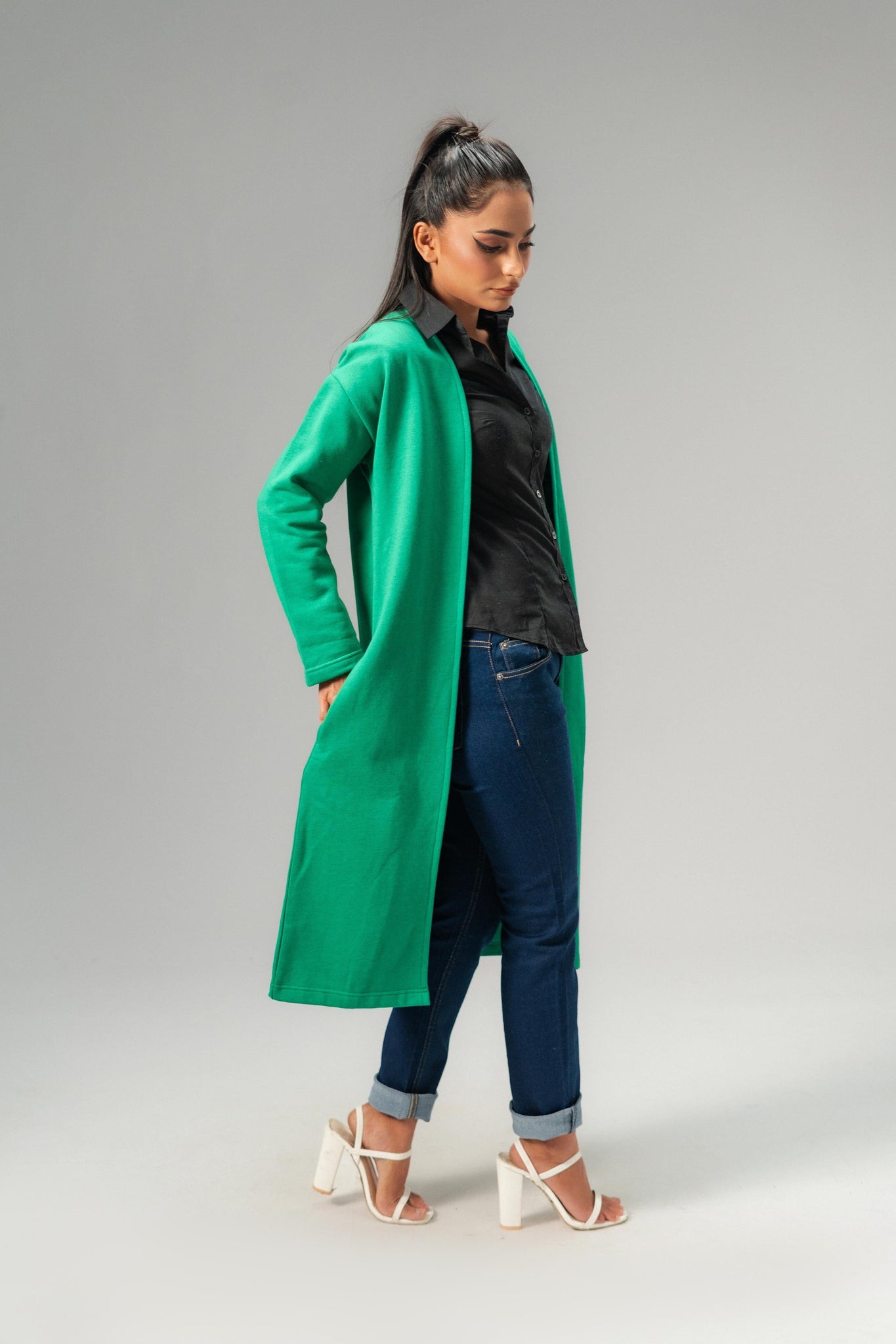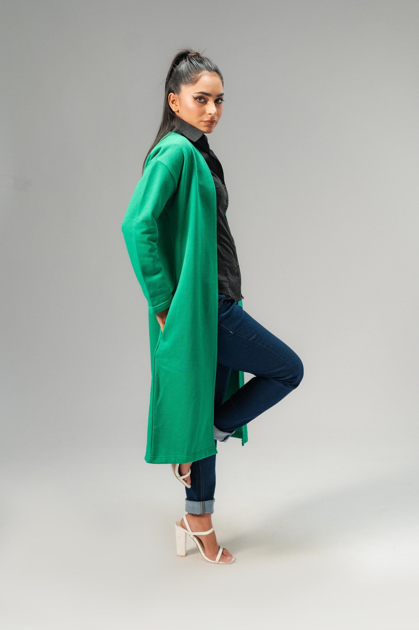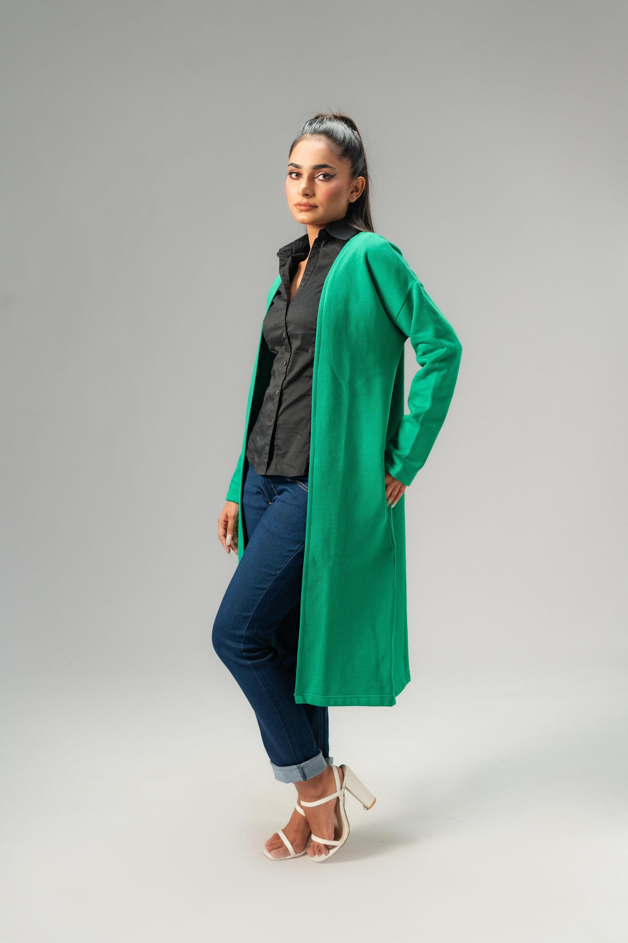 The Women's Long Coat is the perfect addition to your wardrobe this spring in Pakistan. Designed with comfort and style in mind, this coat is made from high-quality fleece material that keeps you warm and cozy on chilly days. The coat features a modern design, two hand pockets, streamlined look that flatters your silhouette. The neutral color options make it easy to pair with any outfit, making it a versatile choice for both casual and formal occasions.