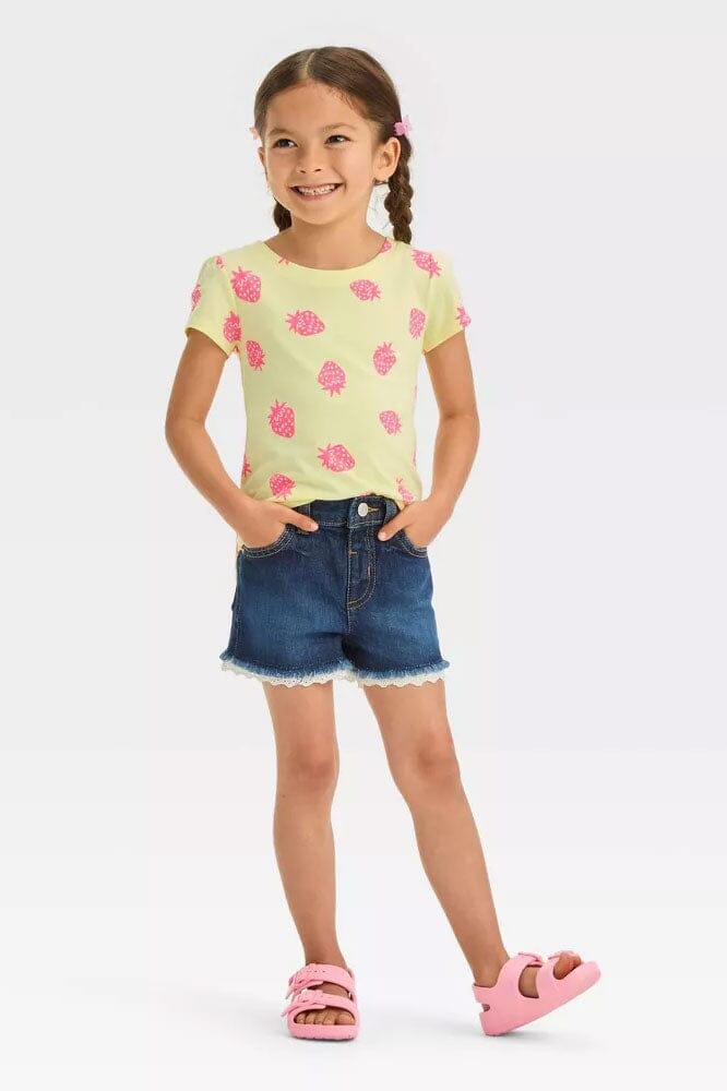 C&J Girl's Lace Bottom Denim Shorts