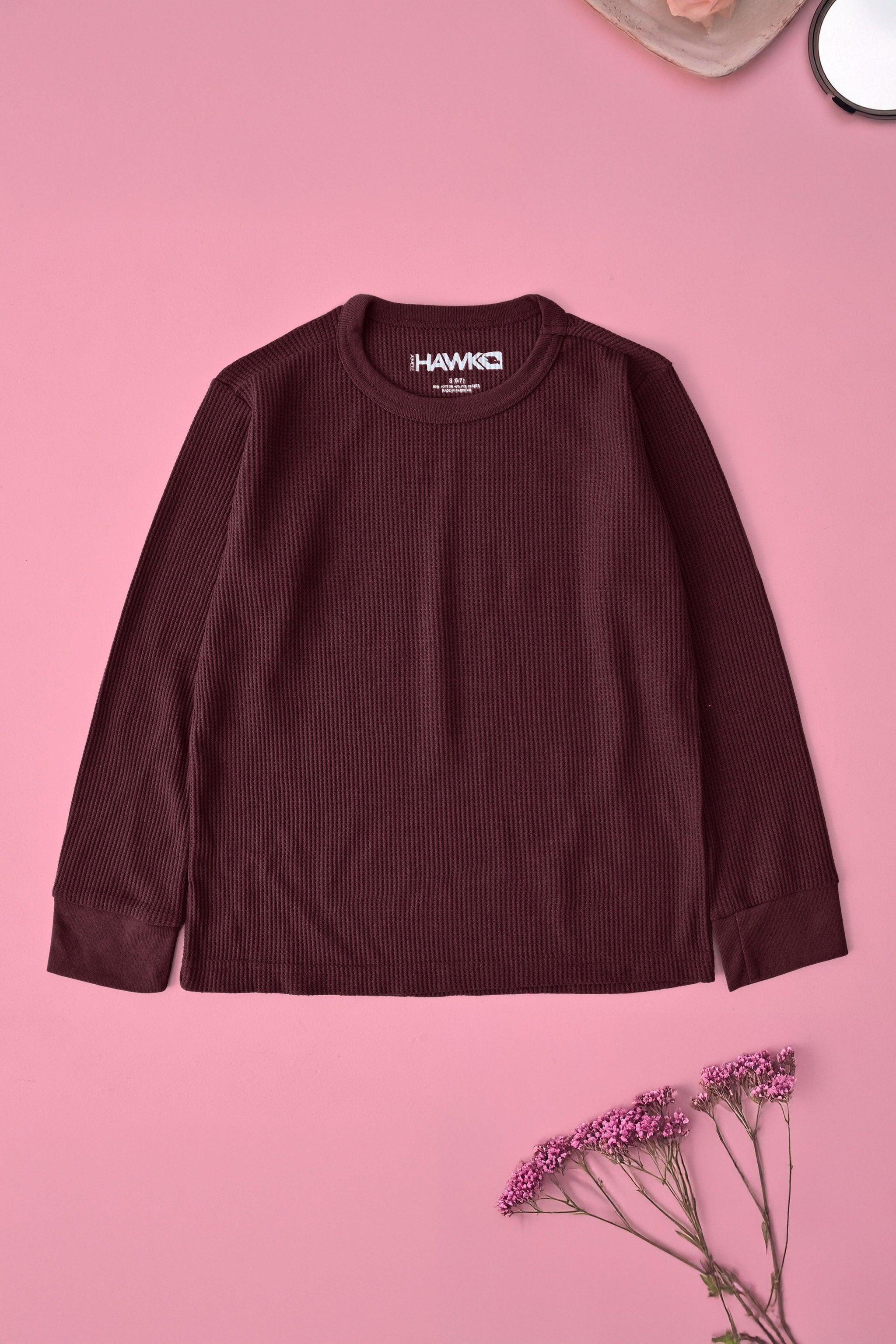 Fabric: 60% Cotton, 40% Polyester, Waffle knit