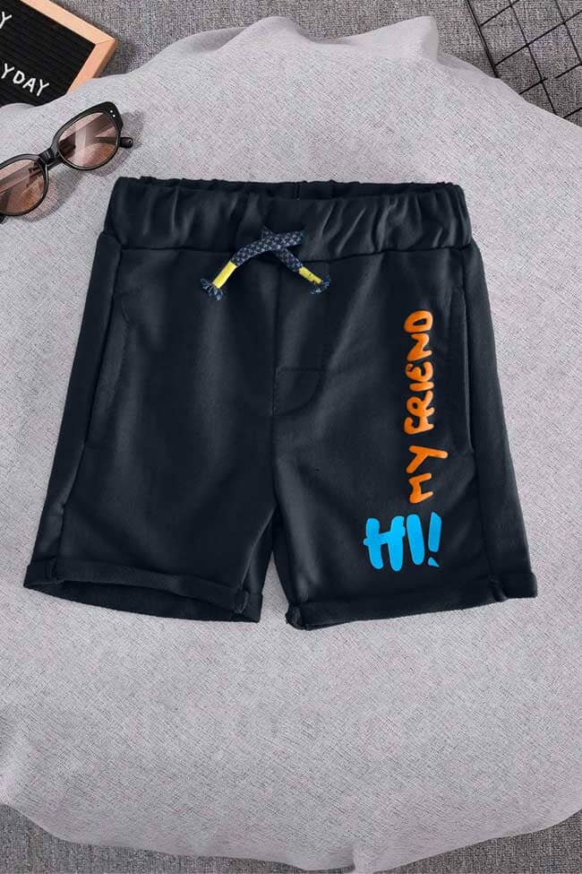 Baby Club Kid's HI My Friend Printed Terry Shorts
