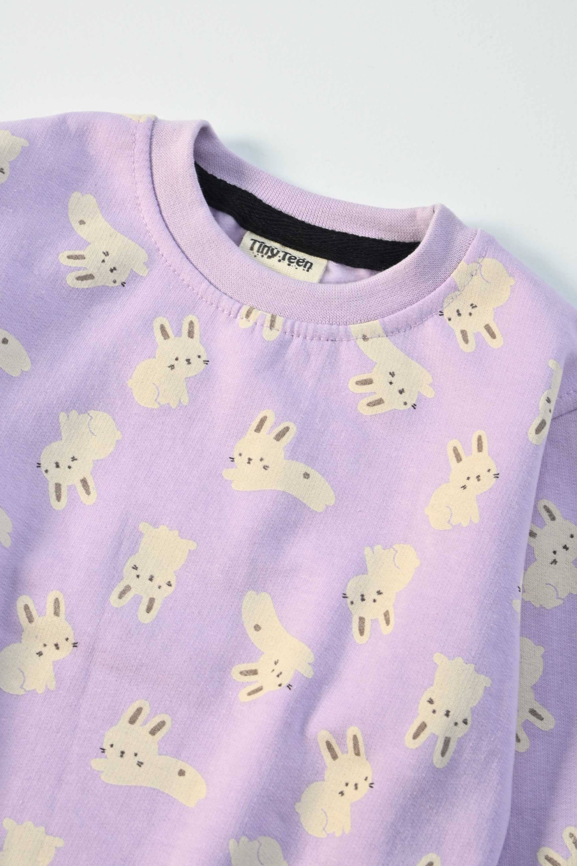 Tiny Teen Kid's Rabbits Printed Fleece Sweat Shirt