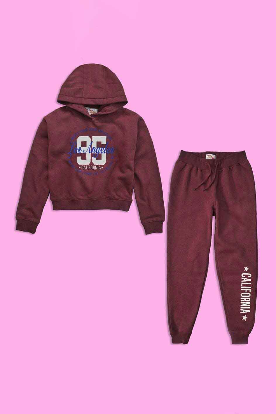 Lyallpur Girl's Los Angeles Printed Fleece Hooded Crop Top Suit