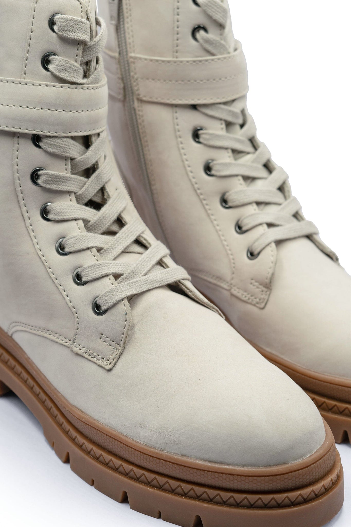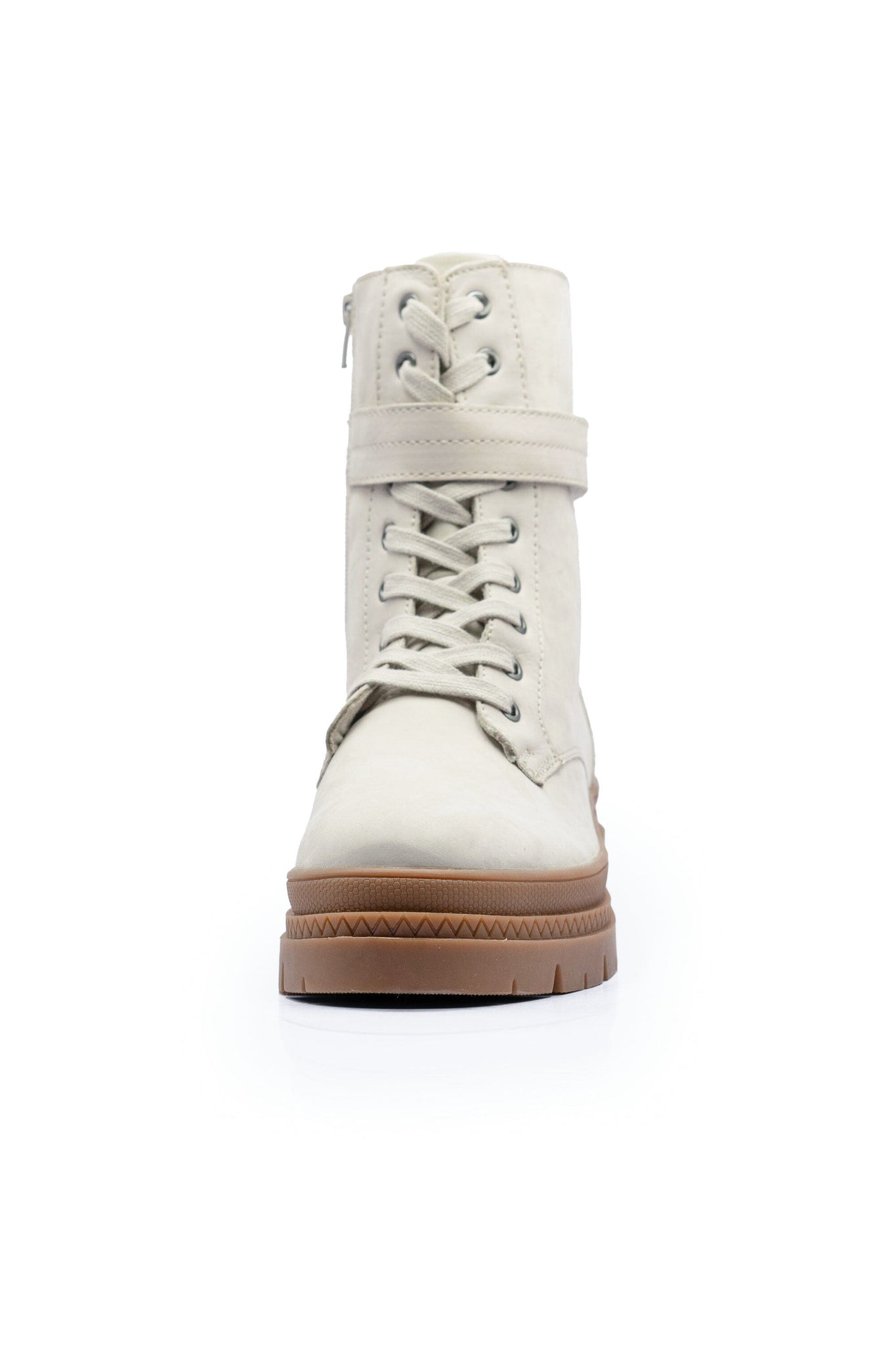 The side zipper and adjustable strap elevate the boots style and functionality, ensuring a snug fit.