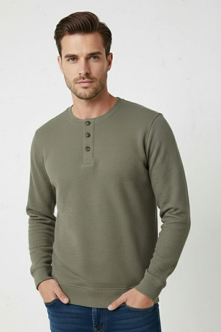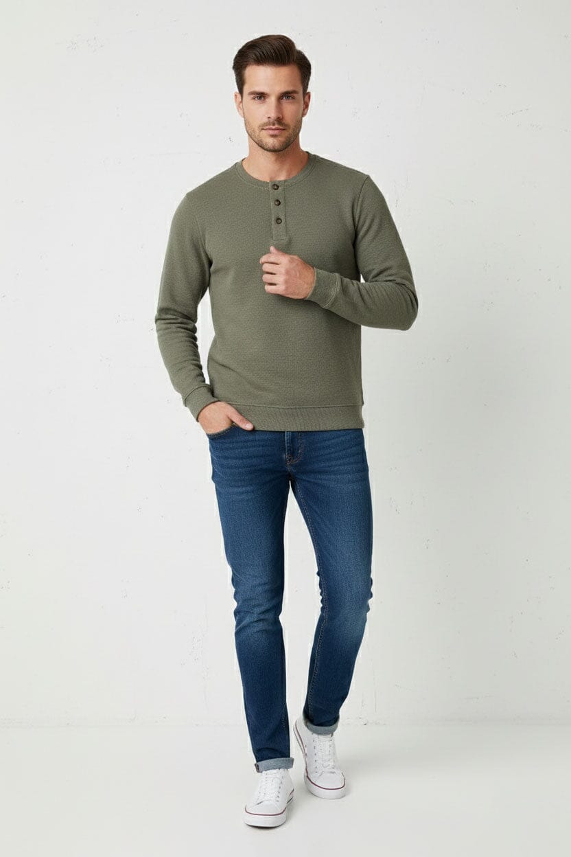 Upgrade your everyday wardrobe with this Henley Sweat, a perfect blend of cozy comfort effortless style. its signature henley neckline gives you a polished look without sacrificing comfort.