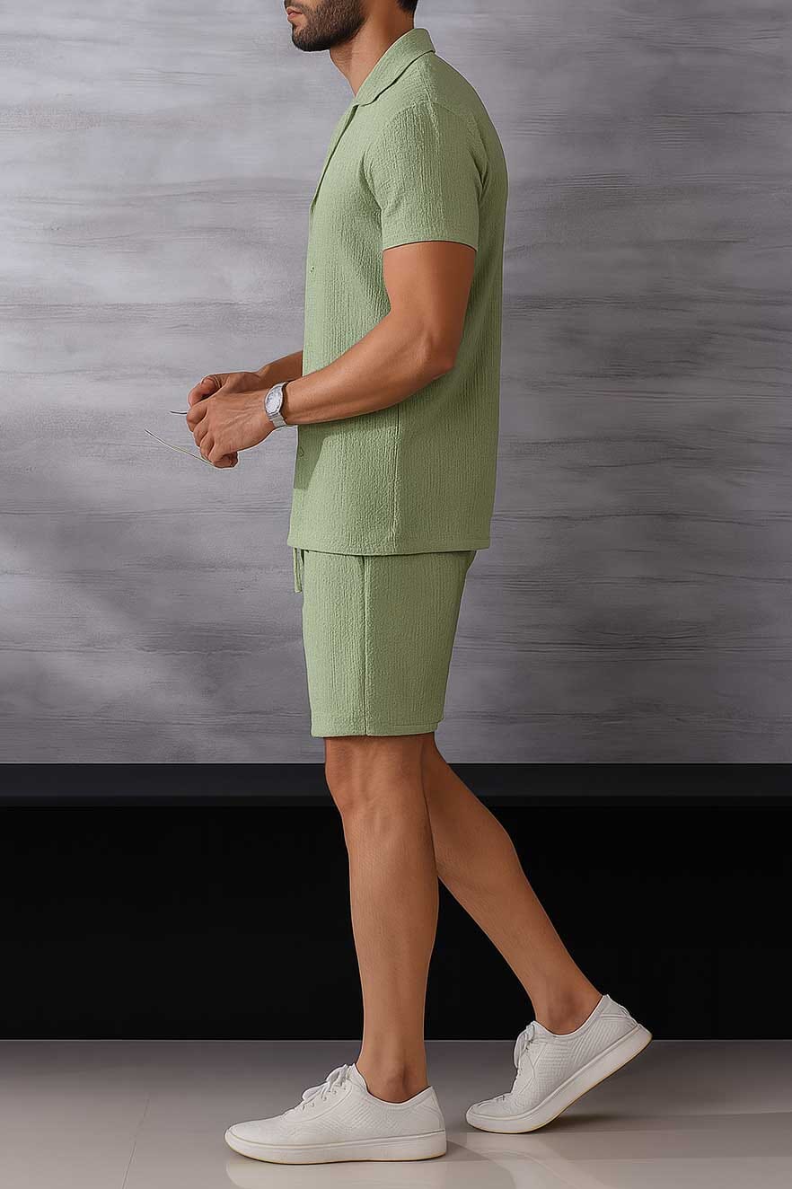 This Men's Camp Collar Twin Set combines relaxed style with everyday comfort. Designed with a flat, open camp collar, it offers a laid-back look perfect for warm-weather wear or casual outings.