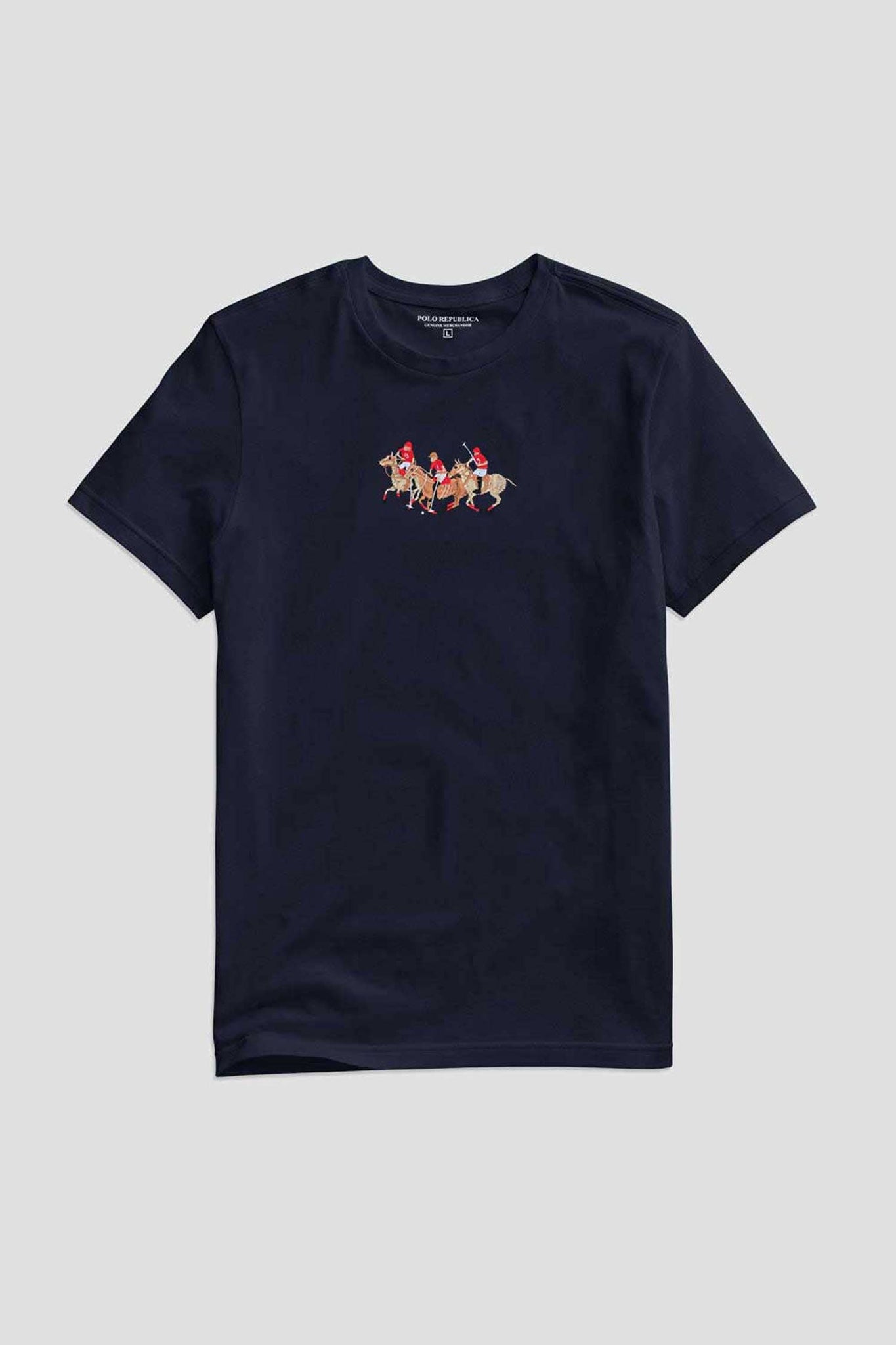Polo Republica Men's Triple Pony Embroidered Crew Neck Tee Shirt