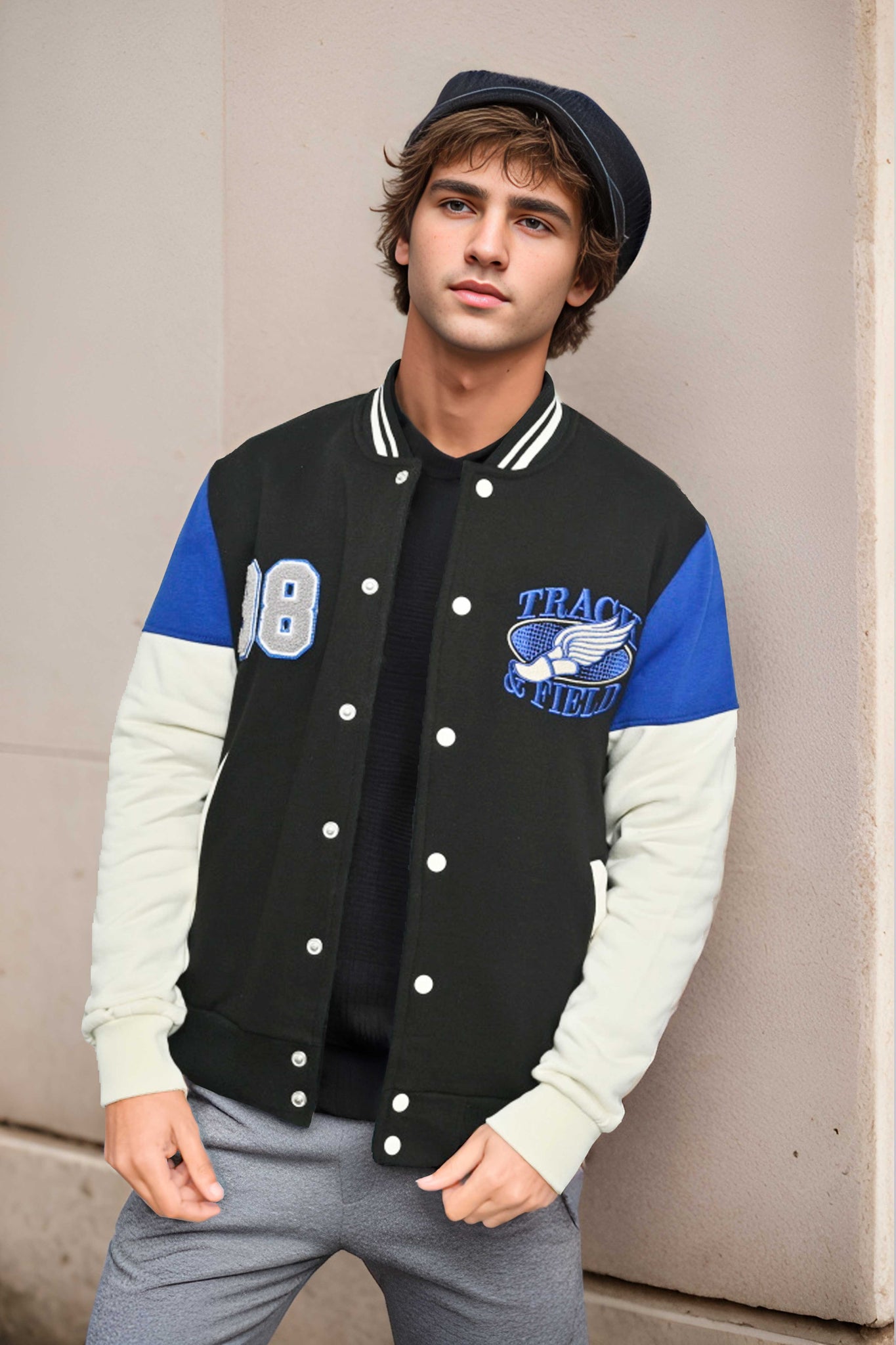 Introducing the Primark Men's Track & Field Embroidered Baseball Varsity Fleece Jacket – your ticket to classic cool with an athletic twist. As a special overrun production originally destined for Primark's shelves, we're offering this gem at a fraction of the price right here in Pakistan.