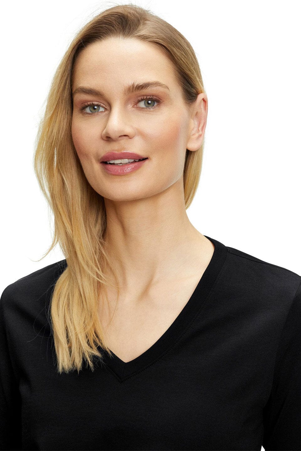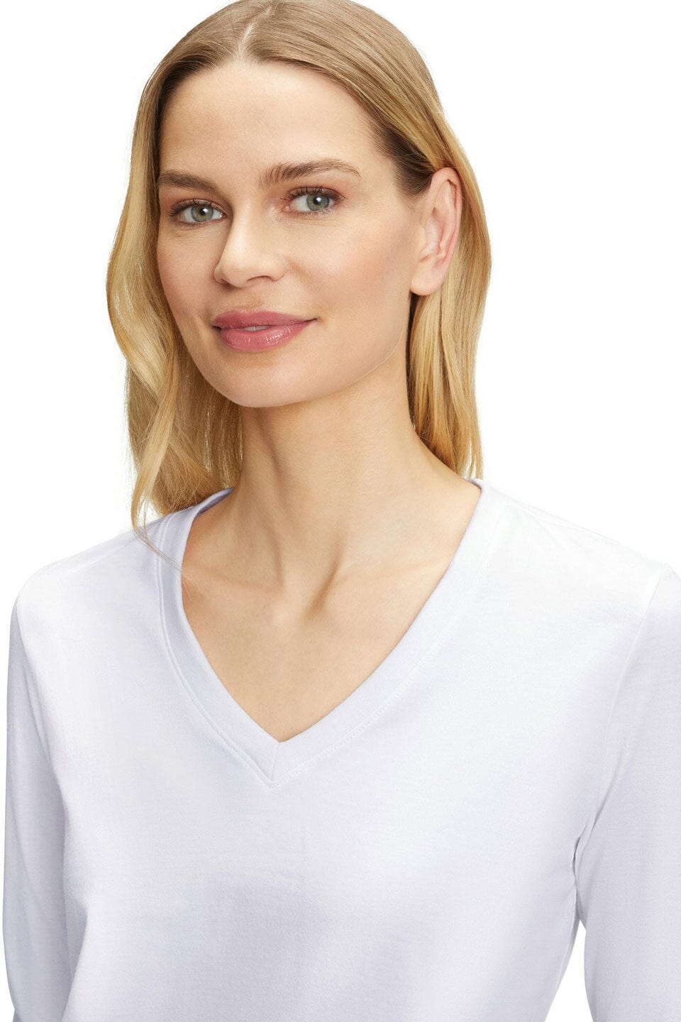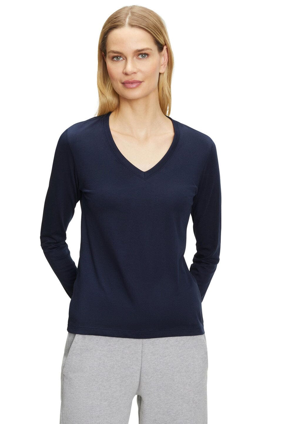 - A sleek V-neck cut that accentuates grace