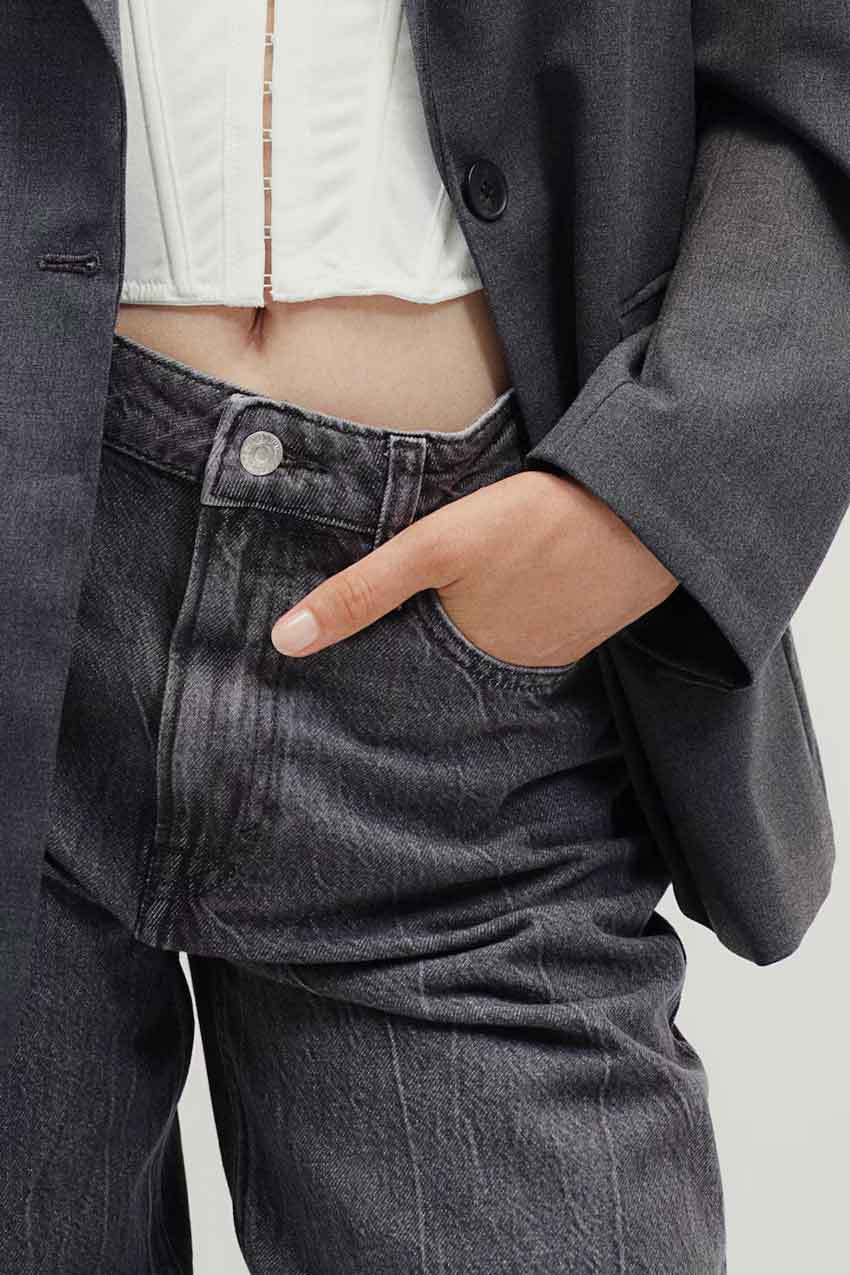 - Zip fly with button closure