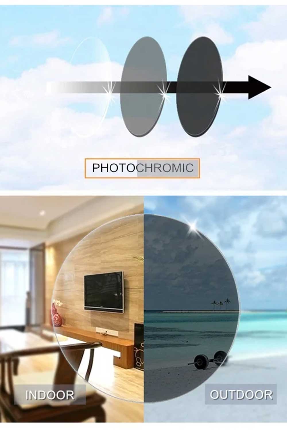 - Photochromic lenses (auto darken in sunlight, clear indoors)