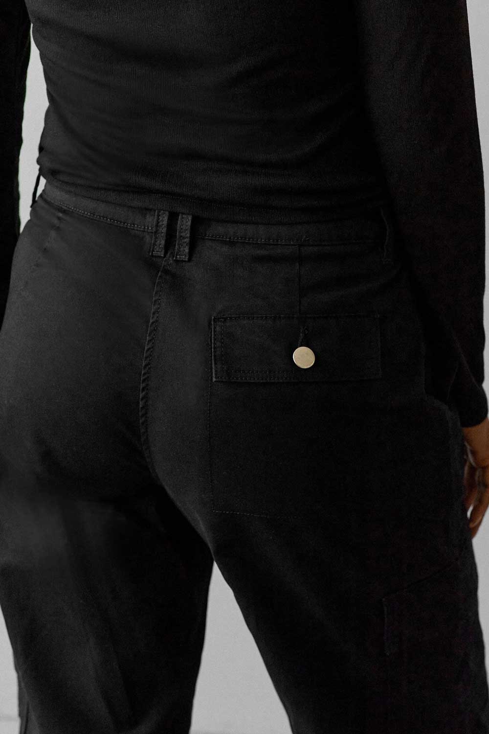 - Patch pockets with flaps on the leg