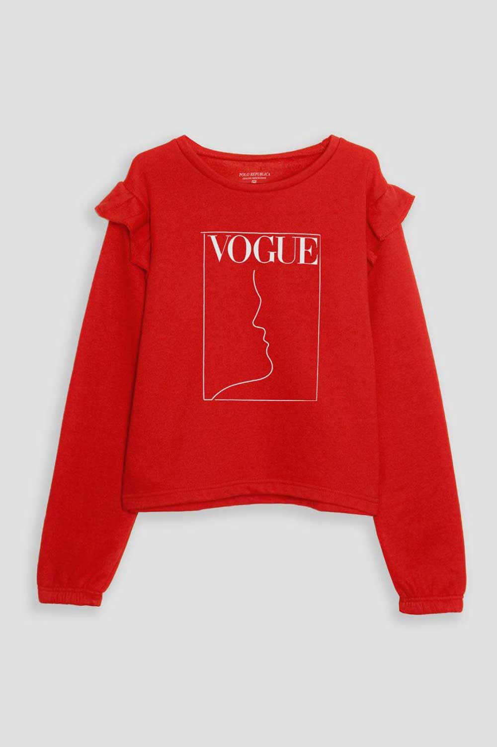 Polo Republica Women's Frill Shoulder Vogue Printed Fleece Sweatshirt