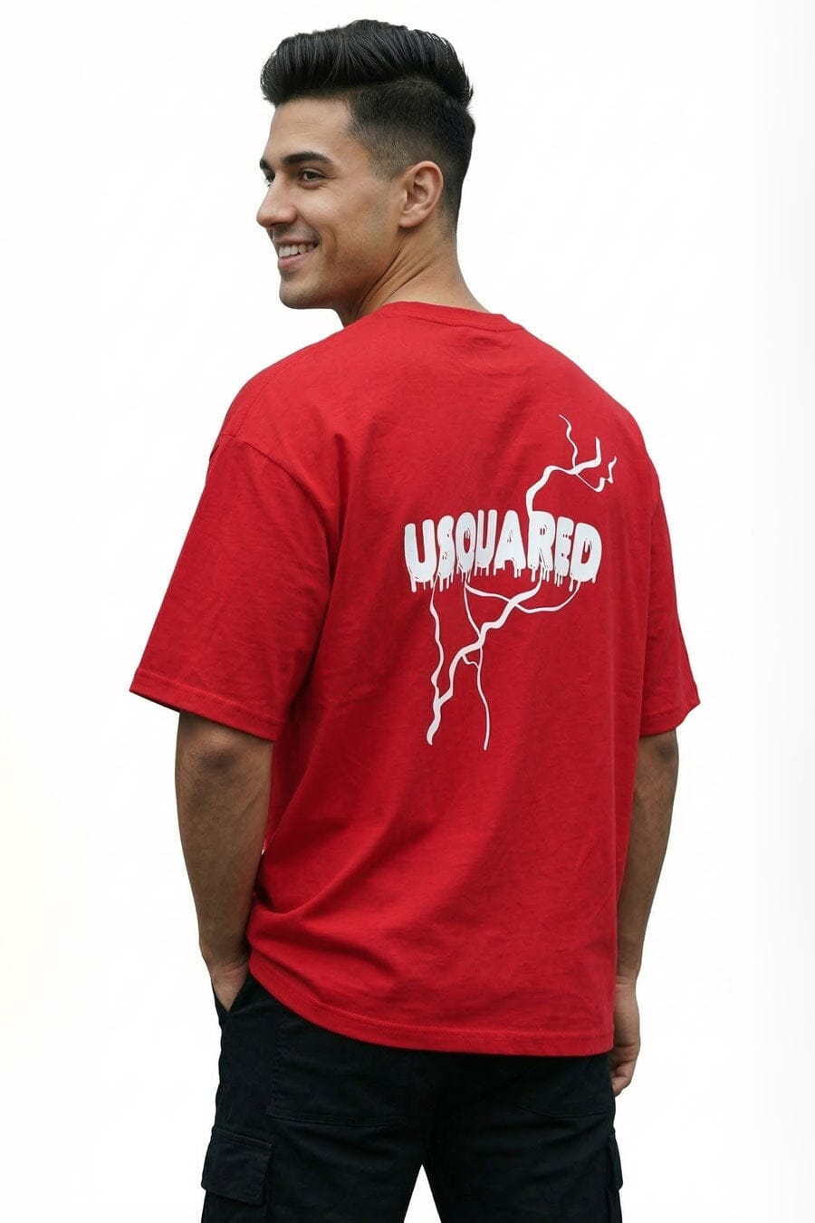 A statement oversized tee designed for a confident, effortless streetwear look. With its bold USQUARED graphic, drop-shoulder construction, and relaxed unisex fit, this piece is made to stand out without trying too hard.